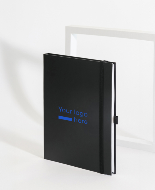 Notes A5 z twardą, płócienną okładką. 192 strony w linie (96 kartek). Kontrastujący elastyczny pasek zamykający i tasiemka do oznaczania stron.